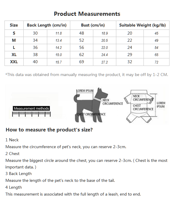 Back Zippered Pet Large Dog Clothes All Seasons Pet Accessories Packing: